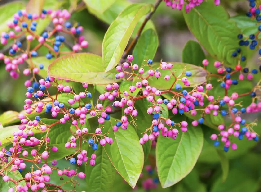 Летом растение даёт плоды, но насколько известно мне, они не съедобны. Мелкие ягоды тёмные и багрового цветов. Они не так живописны и прекрасны, как цветы, но всё же интересны и куст всё равно остаётся с характером.