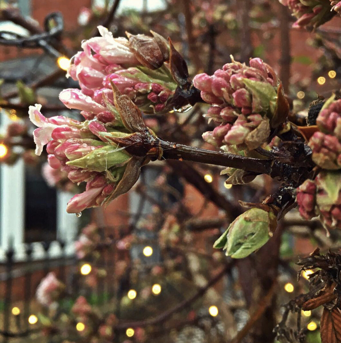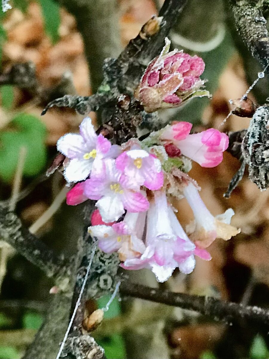 Я уже как-то писала, что идеальный английский сад цветёт круглый год. Поэтому куст калины сорта «Рассвет» - прекрасный выбор, чтобы заполнить зимнее затишье. Гибрид был выведен в 1930-х годах в Северном Уэльсе. Неудивительно, что эта декоративная калина получила награду RHS (Королевское Cадоводческое Oбщество) за садовые заслуги. Куст может вырасти большим, в высоту - 2 метра. Ягод, правда, не получите, но запах от этого куста такой, что, когда я прохожу мимо него, я специально останавливаюсь подышать ароматом и зарядиться положительными эмоциями.