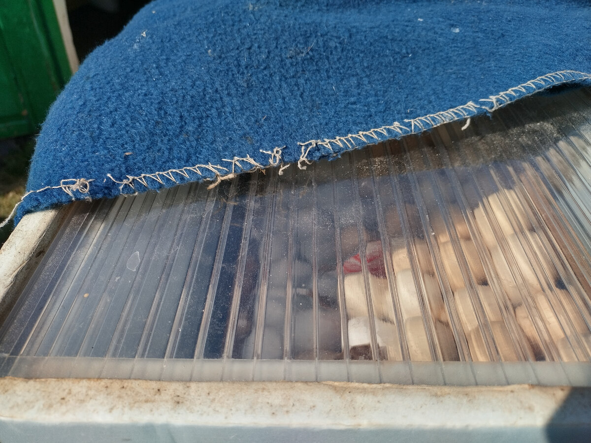 Инкуб стоит в летней кухне. Там значительно холоднее, чем на улице. Решила вынести его на улицу, на солнышко. Обмотала темным одеялом, положила градусник. 30 градусов показывает... Ну хоть не 15, как в помещении кухни.