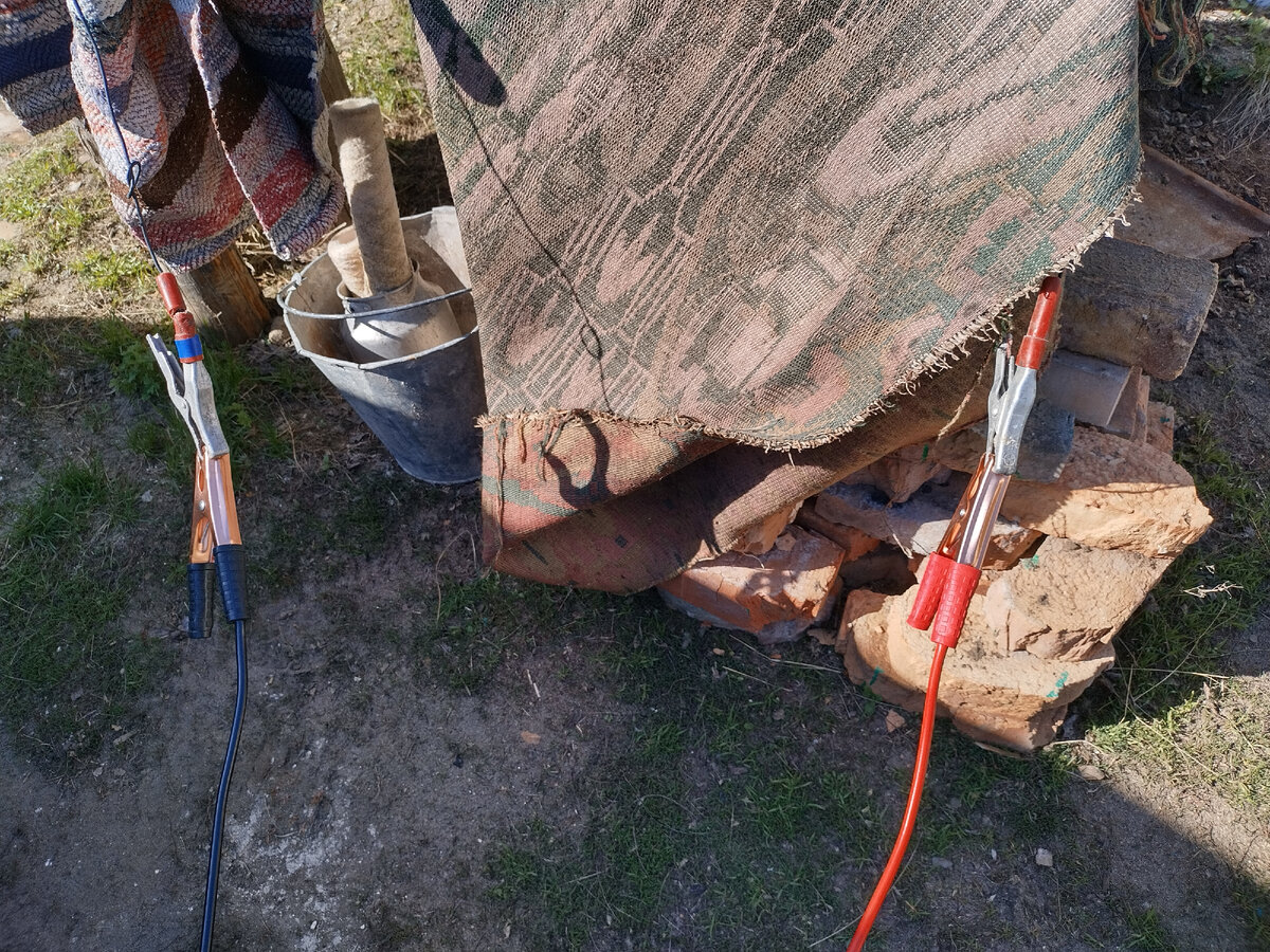 Подгоняет машину почти к самой летней кухне, цепляем два ряда крокодилов, подключаем. Уфффф. спасены яички. При включении градусник уже показывал 33 градуса. Хорошо, водичка помогла.В какой-то момент пришлось раскрыть одеяло, потому что вентилятор работает от аккумулятора в полсилы и нагналась температура аж до 38. Но инкуб умный, он сразу орать начинает, побежала, раскрыла вентиляционные отверстия , убрав от них одеяло. Температура быстро восстановилась.