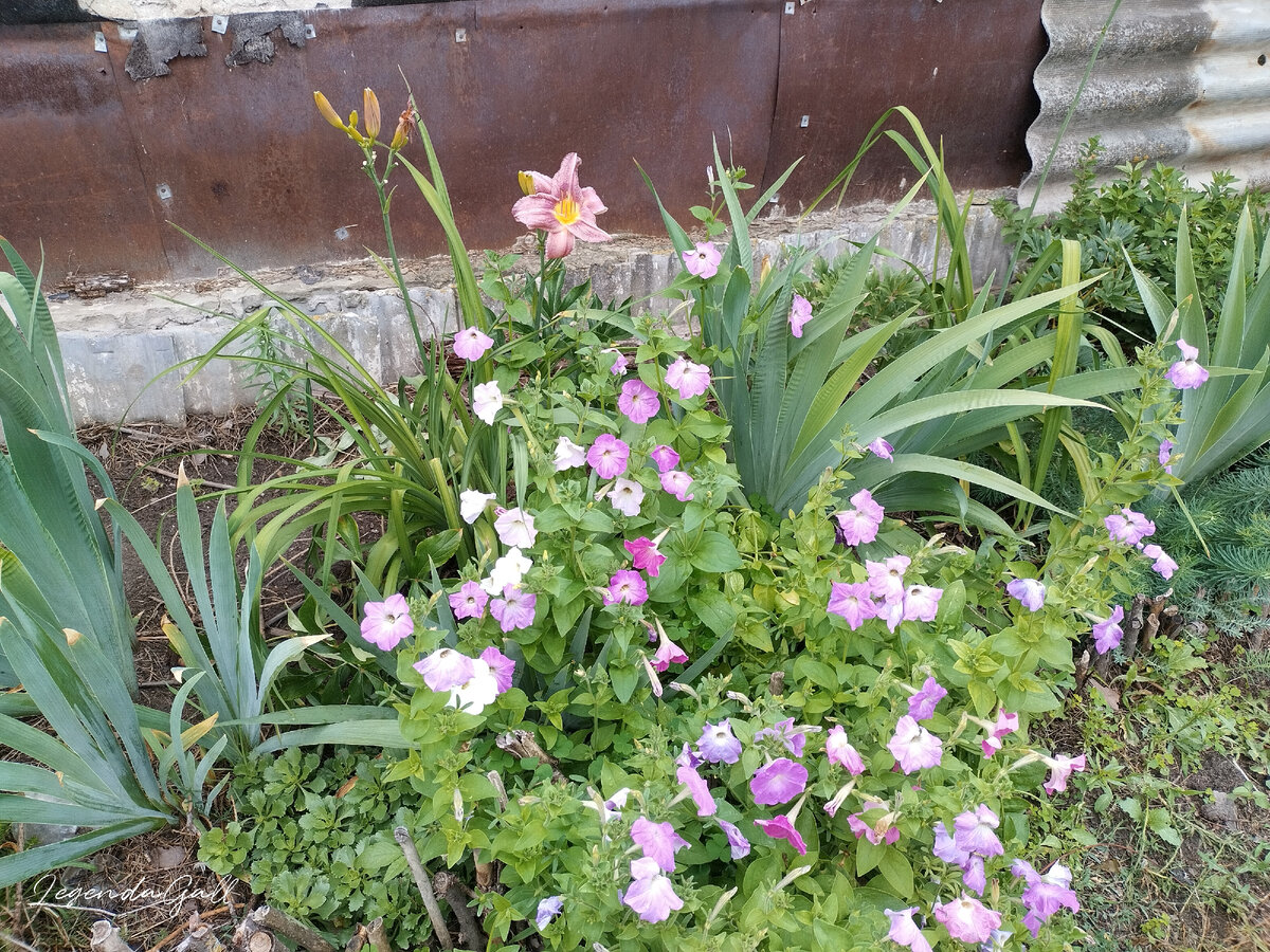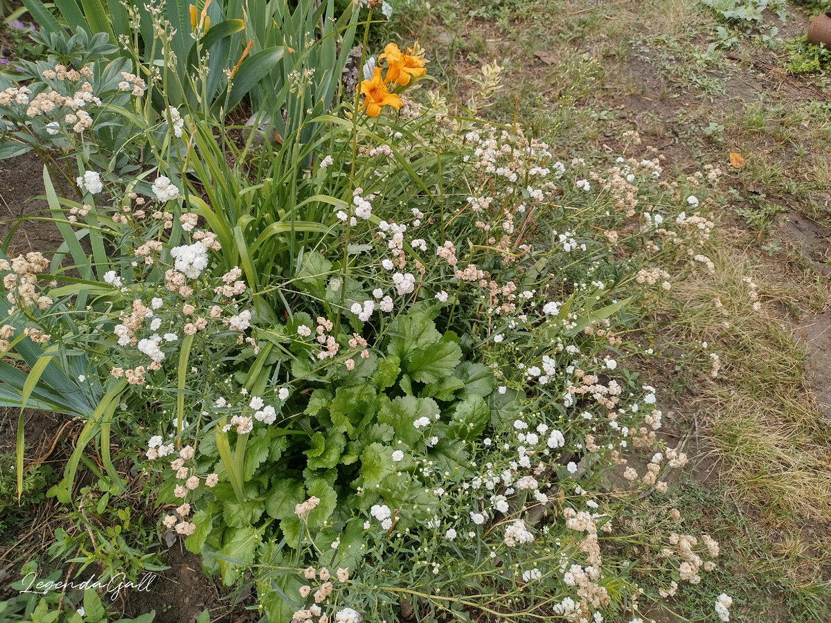 Прошлась по палисаднику. Цветы все от сырости подурнели, у лилейника маленького вообще весь цвет сбило, жемчужница вся потемнела. Надо будет срезать это безобразие...