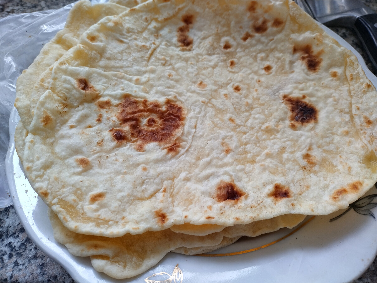 Единственный выход - быстренько напечь лепешек. Мало того, что вкусно, так еще и быстро, не нужно ждать 3-4 часа, пока хлебопечка раскочегарится. Сказано - сделано. Быстренько намесила тесто, для бОльшей эластичности вмешала туда одно яичко. И только собралась весь процесс заснять на фото, как позвонила сестра. Ну и зацепились языками. Пока болтали, я уже и все лепешки успела раскатать и нажарить. а так как кушать ну очень хотелось, то сразу и сели обедать. Да за разговорами совсем из головы вылетело, что надо было достать из холодильника кастрюлю с борщем и погреть содержимое. В результате поели гречи. Муж с рыбными брикетами и селедкой, а я с колбаской. Причем очень вкусно получилось - сделала импровизированную шаверму - колбаску завернула в лепешку, слегка смазав ее майонезом. Хорошо зашло!