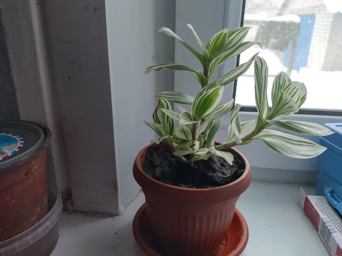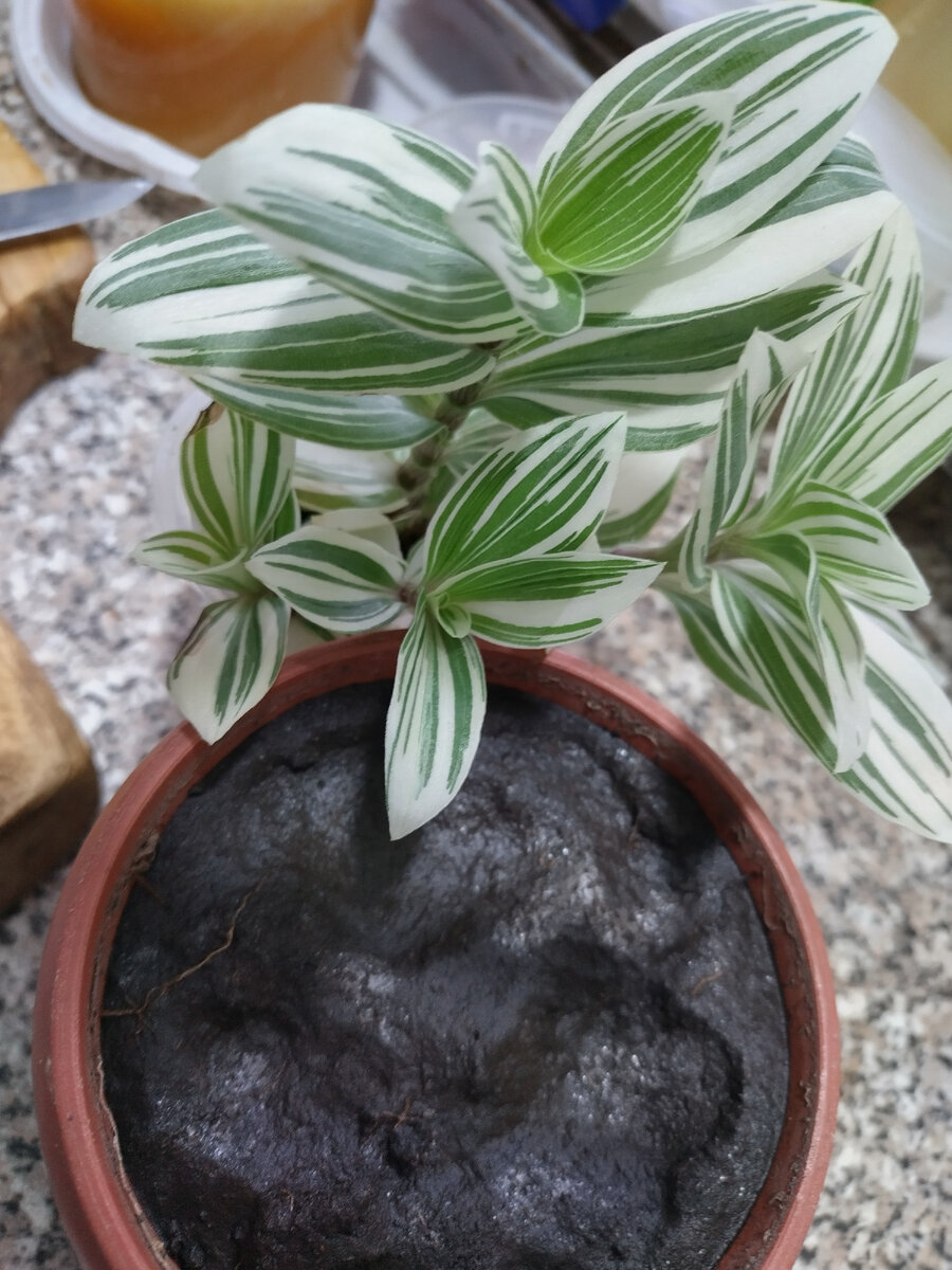 Ну и последнее сегодняшнее утреннее - наконец-то подаренный мне росток традесканции обрел пусть небольшой, но уже более солидный горшочек. Землю я вчера еще набрала из ведра, которое для рассады приготовила, добавила немного гумуса - подарок Дмитрия ))