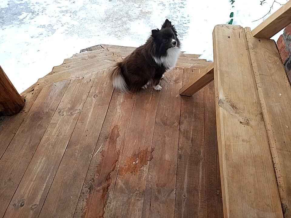 А потом папа решил оторвать планки на потолке в моей комнате. И естественно вместе с планками посыпалась куча мусора. Надо прибрать, то есть пропылесосить. Понька как только увидела, что достается пылесос, помчалась к входной двери, вибрируя всем телом. Ну пришлось пойти прогуляться. Заодно мне нужно было надробить зерна для птицы.
