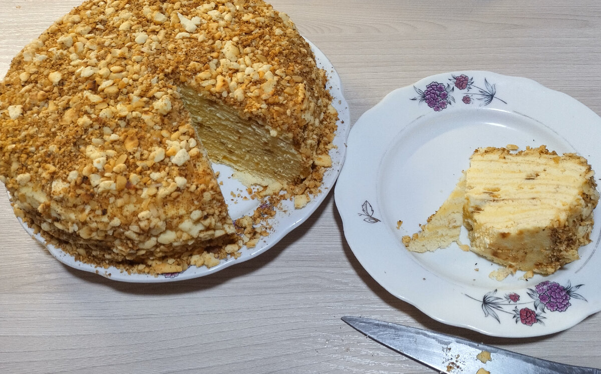 А потом мы пробовали тортик. Ммммм, какой он нежный и вкусный! Хотела обойтись одним кусочком, но не распробовала как следует, пришлось два съесть.. Так хорошо он пропитался, коржи не чувствуются, такая нежная сплошная масса. Тортику быть! Вот еще попробую медовик на сковороде испечь. Как соберусь - обязательно расскажу!