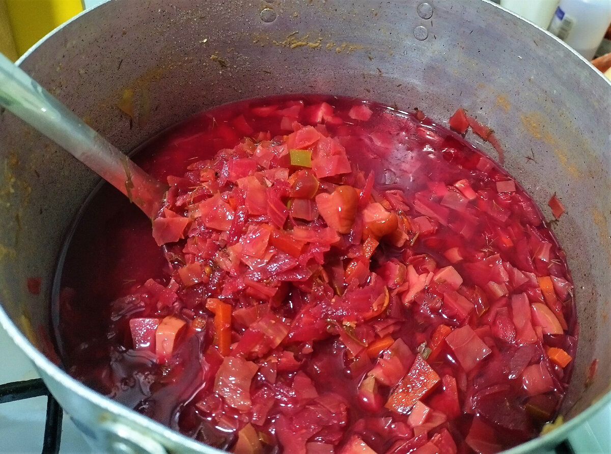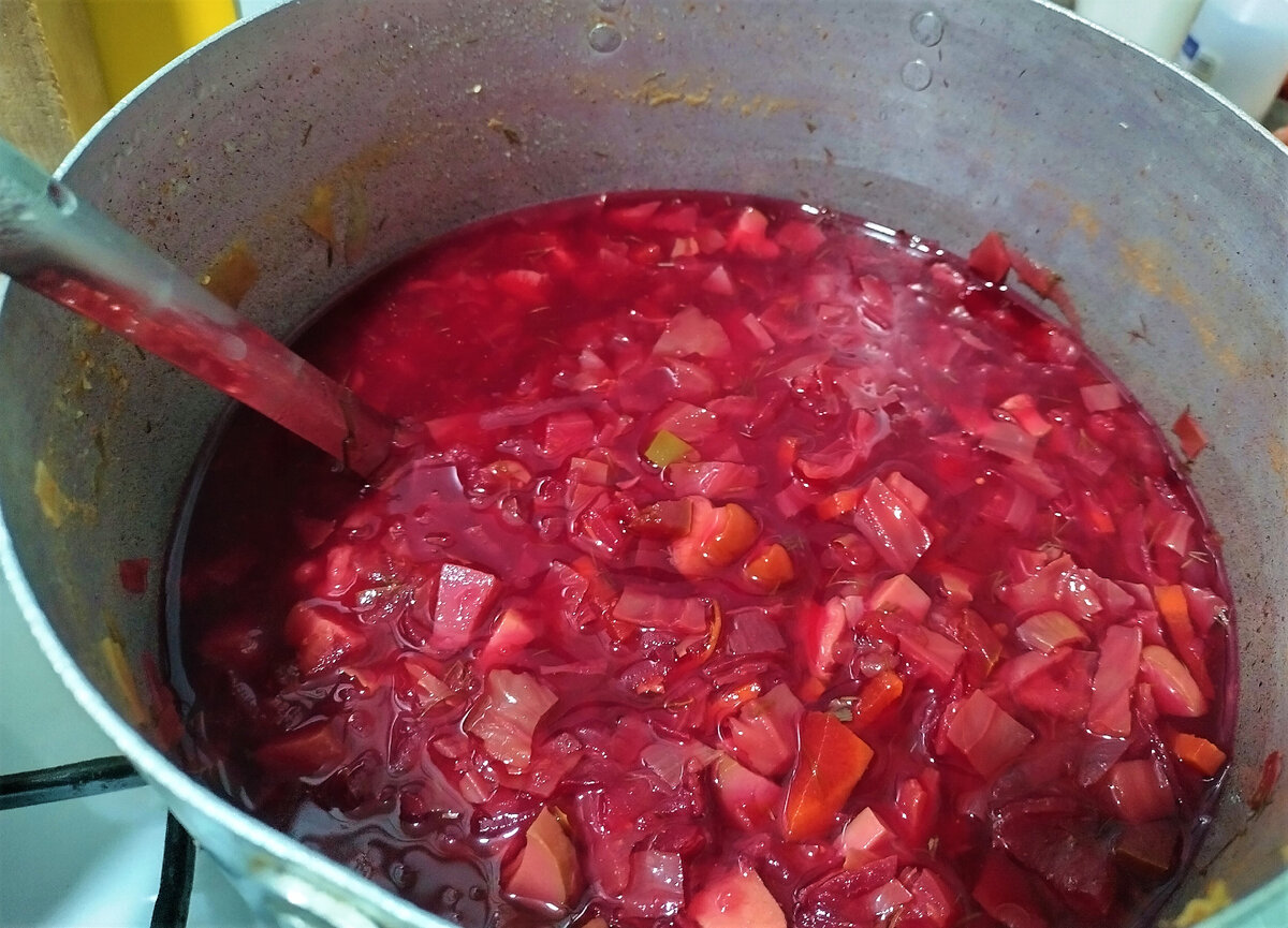 А я как в том анекдоте - хлеба не было, поэтому масло мазали прямо на колбасу.. Масла никакого я никуда не мазала, но от того батончика колбасы, который я вчера открыла, почему-то остался мааааленький хвостик.... Так вкусно постный борщик вприкуску с колбаской! Ммм....