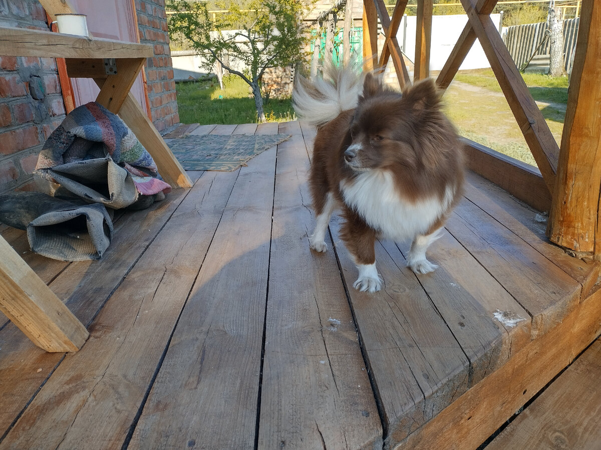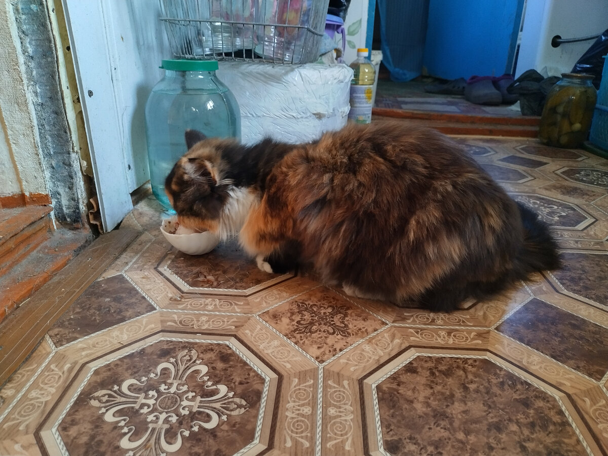 Пока нас не было, дома нахулиганили звери. Понька с нами была, а Муха дома оставалась. Зашли домой - а на полу рыбка слегка погрызенная лежит.