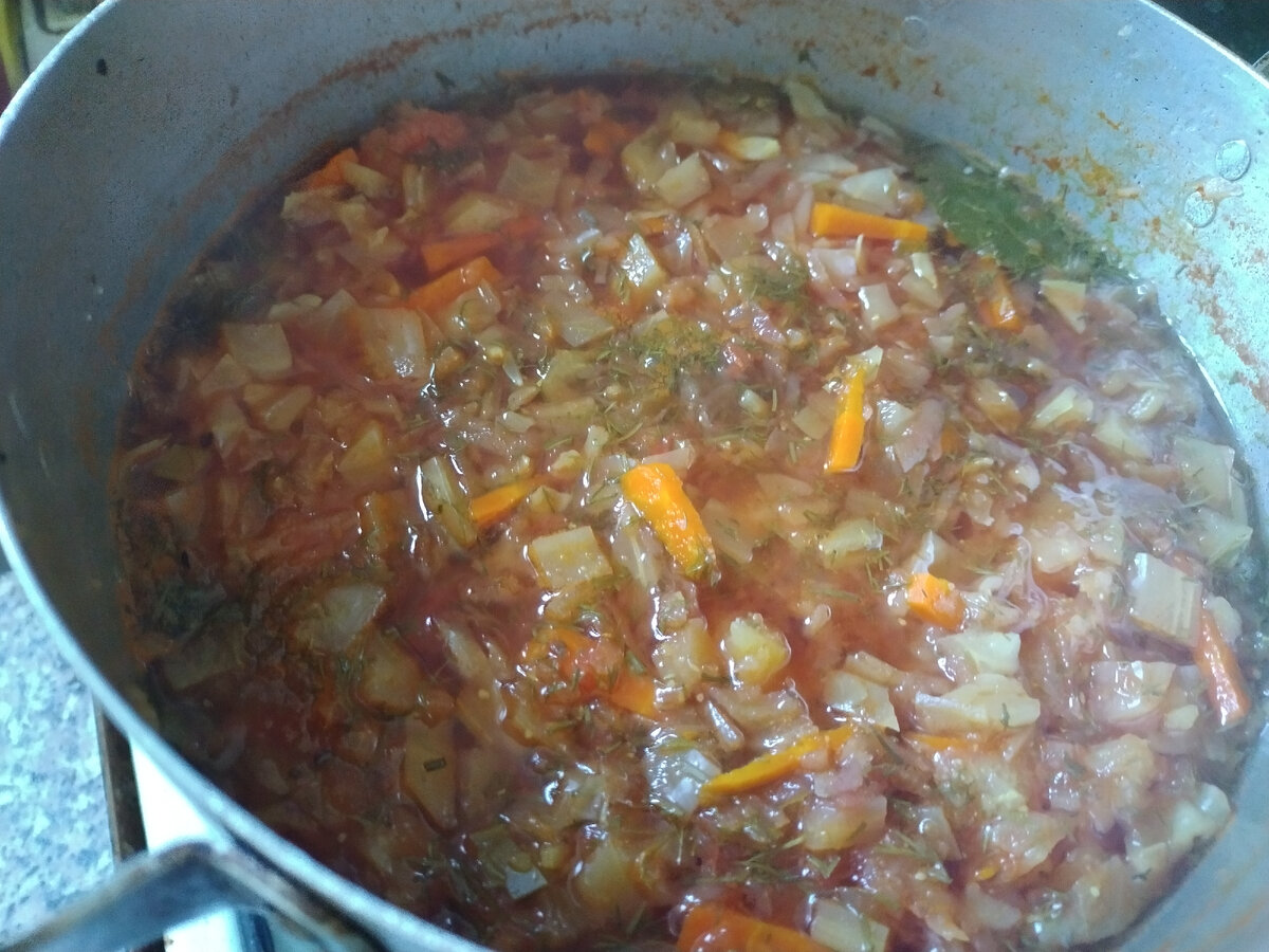 Так, не отвлекаемся, дальше поехали. Сварила наконец-то борщ. Недели три собиралась. Но нормального не получилось - местная свекла не предназначена для моего, уральского, насыщенно-свекольного цвета. Она почти белая внутри. Соответственно и сам борщец получился какого-то грязно-розового цвета. Хотя там и томата немало налито...