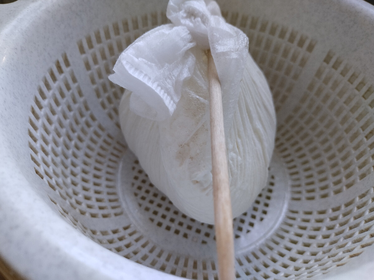 Таак, чем сегодня с утра занималась? Да, вчера наконец-то закисло молоко на творог. И то, только после того, как я в него подсырной сыворотки чуток плеснула. Сварила вечером, к утру остыл, отцедила, подвесила стекать