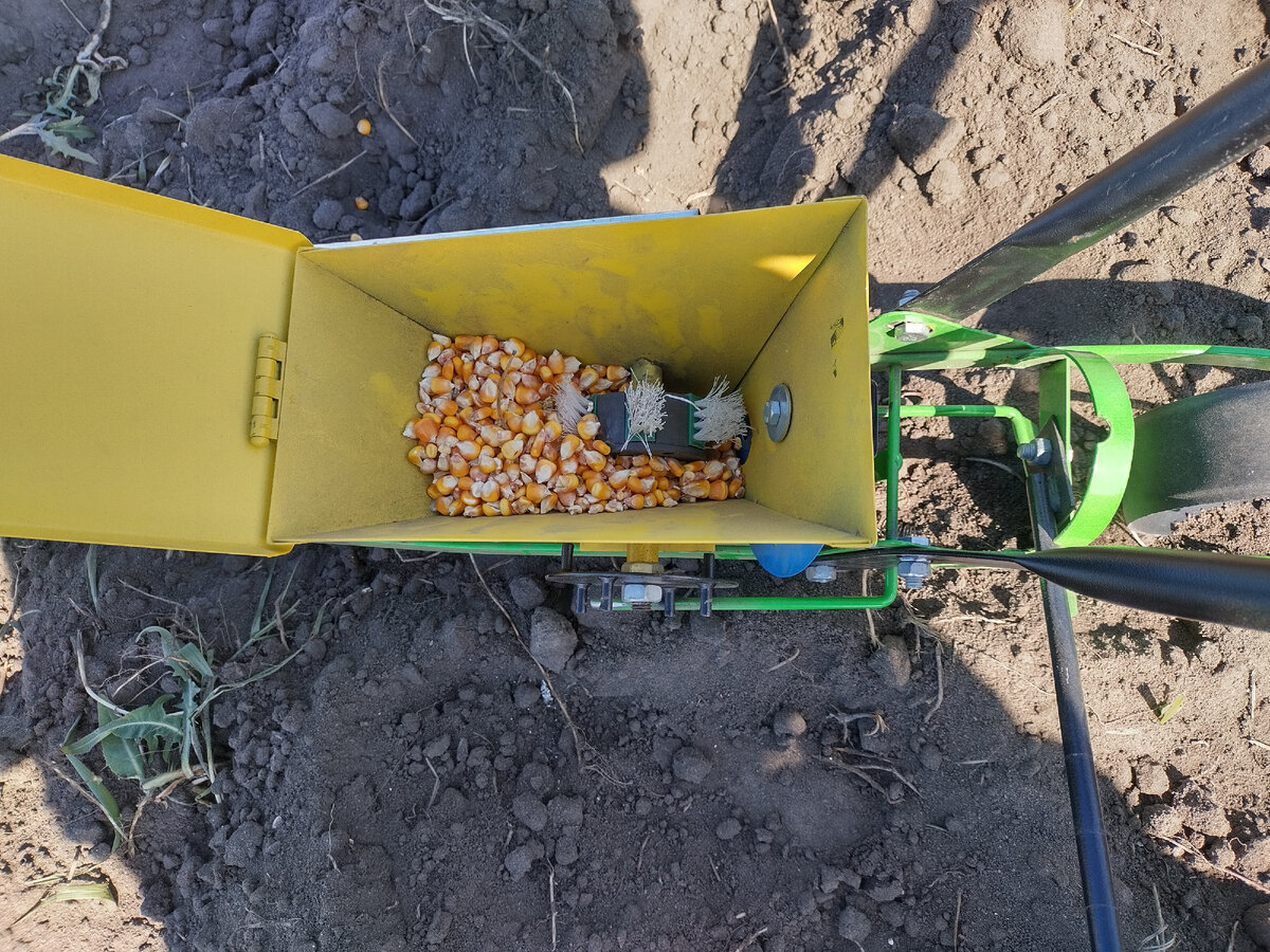 Ну и поперлась с сеялкой в конец поля. Туда, где картошку сажали. Параллельно ей решила два-три рядочка кукурузы посадить, дальше до самого эспарцета - кормовую свеклу. Взяла с собой полтора стакана кукурузы. Замачивать не стала, потому что пока морозы, мне не нужно, чтобы она быстро взошла.