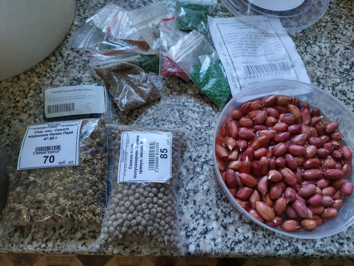 Вернулась с травой, накормила козявок, а сама пошла готовиться к посевной. Решила сегодня с помощью своей новой сеялки посадить кукурузу на корма, свеклу кормовую, морковь и столовую свеклу. Еще взяла с собой пакетик укропа, редиски немного и гороха пачку. Но до мелочей не дошла. Сломалась.. Ой, опять вперед забегаю...