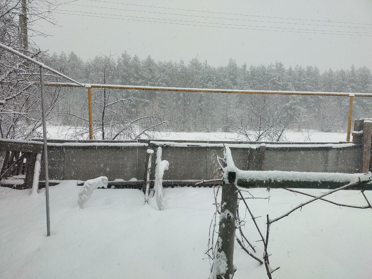 Ну пока ворота открыты, вышла, чтобы сфотографировать снова побелевший лес