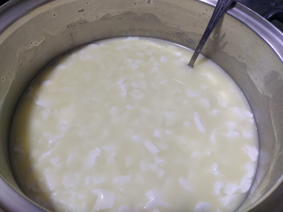 Я взялась варить сыр. Не то, чтобы много молока собралось, сейчас расход-то побольше стал. Просто две банки уже стоят пару дней, и еще половинка осталась со вчерашнего вечернего молока. Чтобы не скисло, хотя бы небольшую головочку нужно сделать