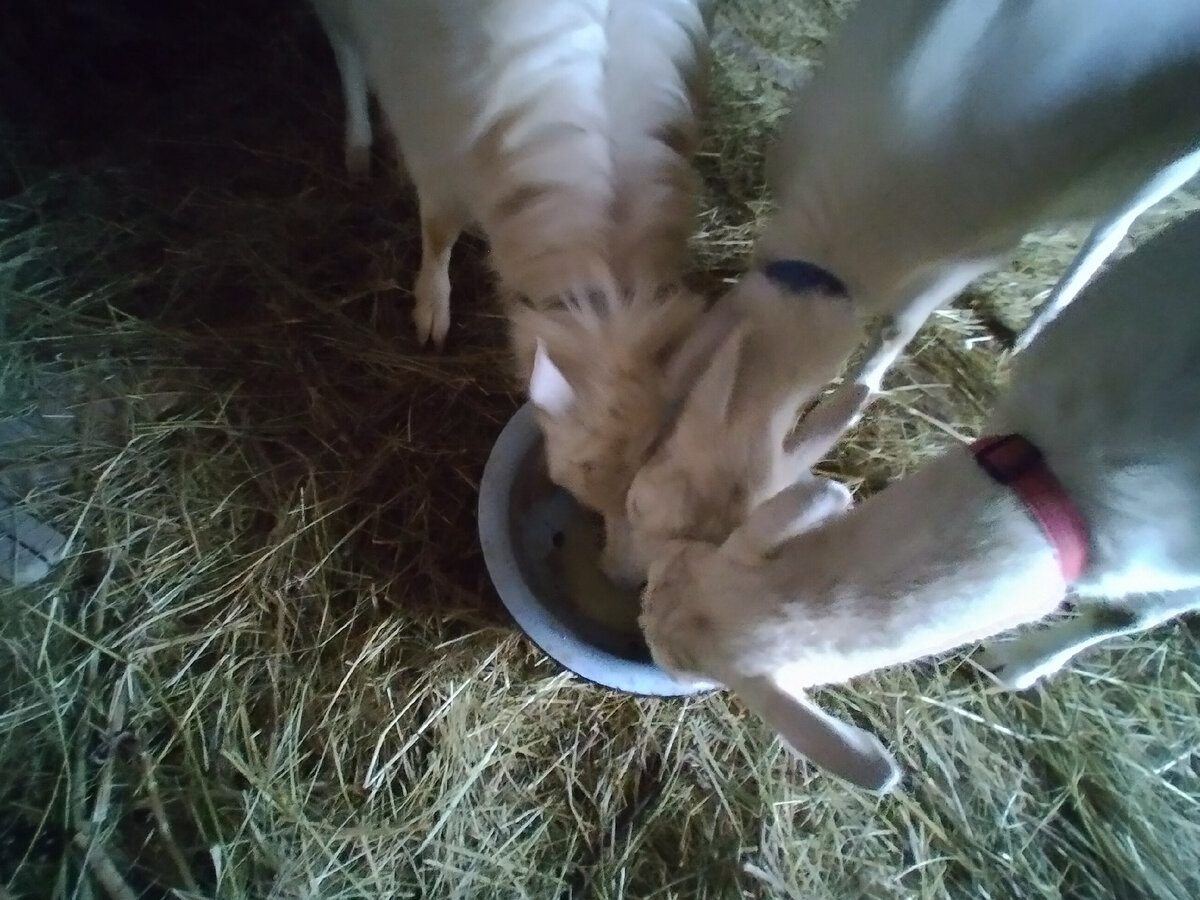 Ой, пойду угощу козочек сывороткой. Сегодня ее не много, но хоть сколько есть. А там уже надо будет в козовнике тоже все прибрать и свежей воды налить. и загонять их по стайкам.. Потом корма на вечер готовить, уткам и курам воду поменять, остатки овощей порезать на ужин. Да и нам тоже ужин приготовить. Но это сегодня не сложно - решили гречу сварить, да Олегу рыбные брикеты пожарю. А мне колбасу мою спасать нужно. С кашей да с остатками тушеной капусты хорошо пойдет.