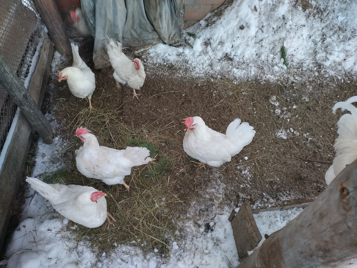 Пока возилась с печкой в кухне, открыла дверку у уточек. Они вывалили на снег, радостные такие. Но так как их нынешнее место жительства находится вне загона, я постеснялась их по двору выпускать гулять. Мало того, что загадят все тропки, так еще и улететь могут. Крылья я им еще не подрезАла. Ну минут 15 погуляли, и хватит для начала.