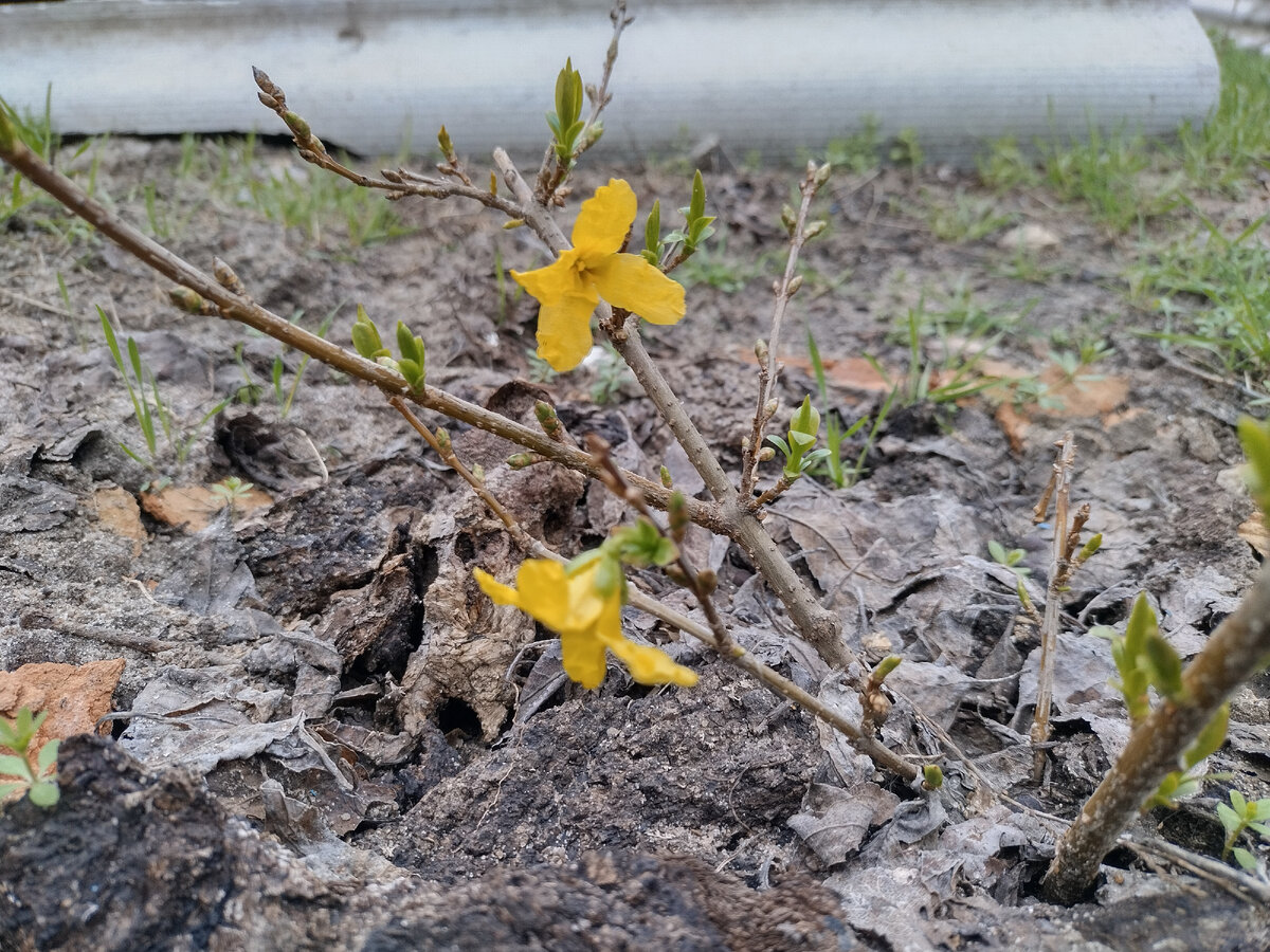 Задала им сена побольше, водички свежей налила. А сама пошла с телефоном гулять по территории. Сегодня покажу все, что цветет. Не много, но все равно приятно