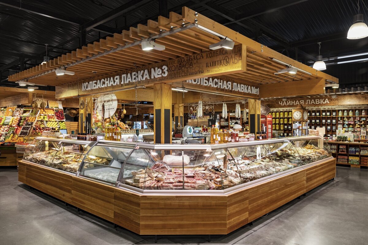 Здесь вы найдете фермерские продукты из Калуги, Подмосковья, Ярославля, Сергиева Посада, Тамбова и Пензы. Всё, чего пожелает ваша душа, начиная от более 35 видов сыра, заканчивая верблюжатиной и кониной. Морепродукты из Испании, ароматные специи, экзотические фрукты и еще множество всего.