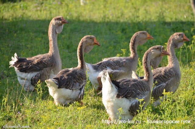Именно такие пернатые наращивают максимальную массу – до 12 кило. Говорят, что это не предел. Несколько огорчает низкая яйценоскость холмогорских гусынь – в лучшем случае 50 яиц за сезон.