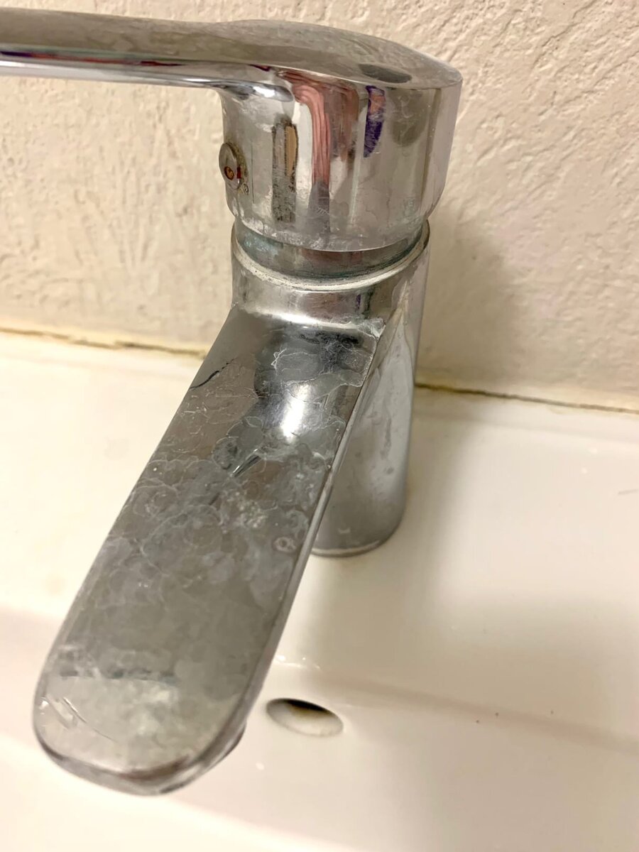 Покажу все на примере своего смесителя, но сразу отмечу, что очищала его до этого я примерно недели 3 назад. И как видите особых наростов у меня все равно не образовалось. Хотя в регионе, котором я живу вода крайне жесткая, и без моего любимого средства наша сантехника просто была бы полностью покрыто этим налетом.