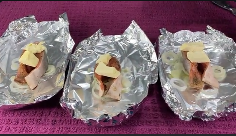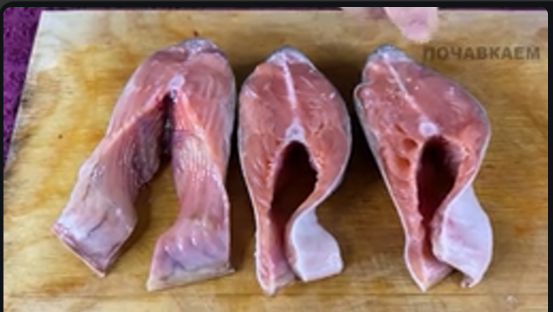 А просто обчекрыжит три кусотька (т.к семья-то большая, да три человека: отец мой, да Я) и засыплет специально -специонными специями из пакетикоф. Специев (у Натахи их имеется целых два!!!) Главным иНдигиентом яфляются лодочки из фольги!!! Они наиболее фкусны здеся т.к. рыбов Натаха обложит кольцами, разделенными на колетьки, лука!