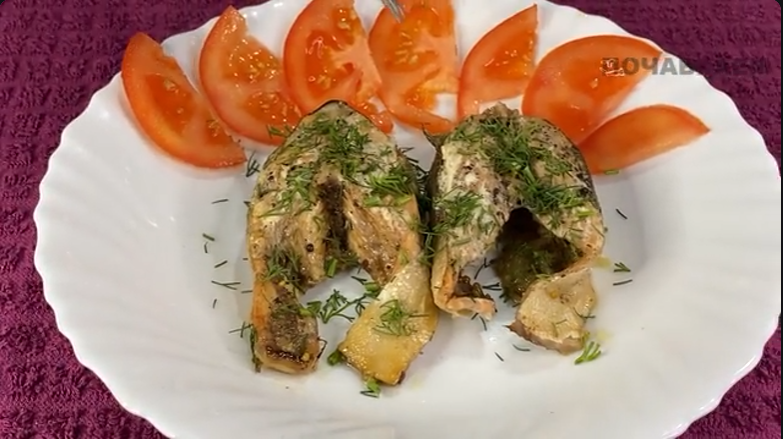 Ииии....внимание! Секретный секрет! Сливочное маселькО (возможно и не сливошное, а от пальмочки).! Запекается в индивидуальной хатке сие филе. А посыпать изобретение века надо чем? Пральна! Укропом! Бинго!
