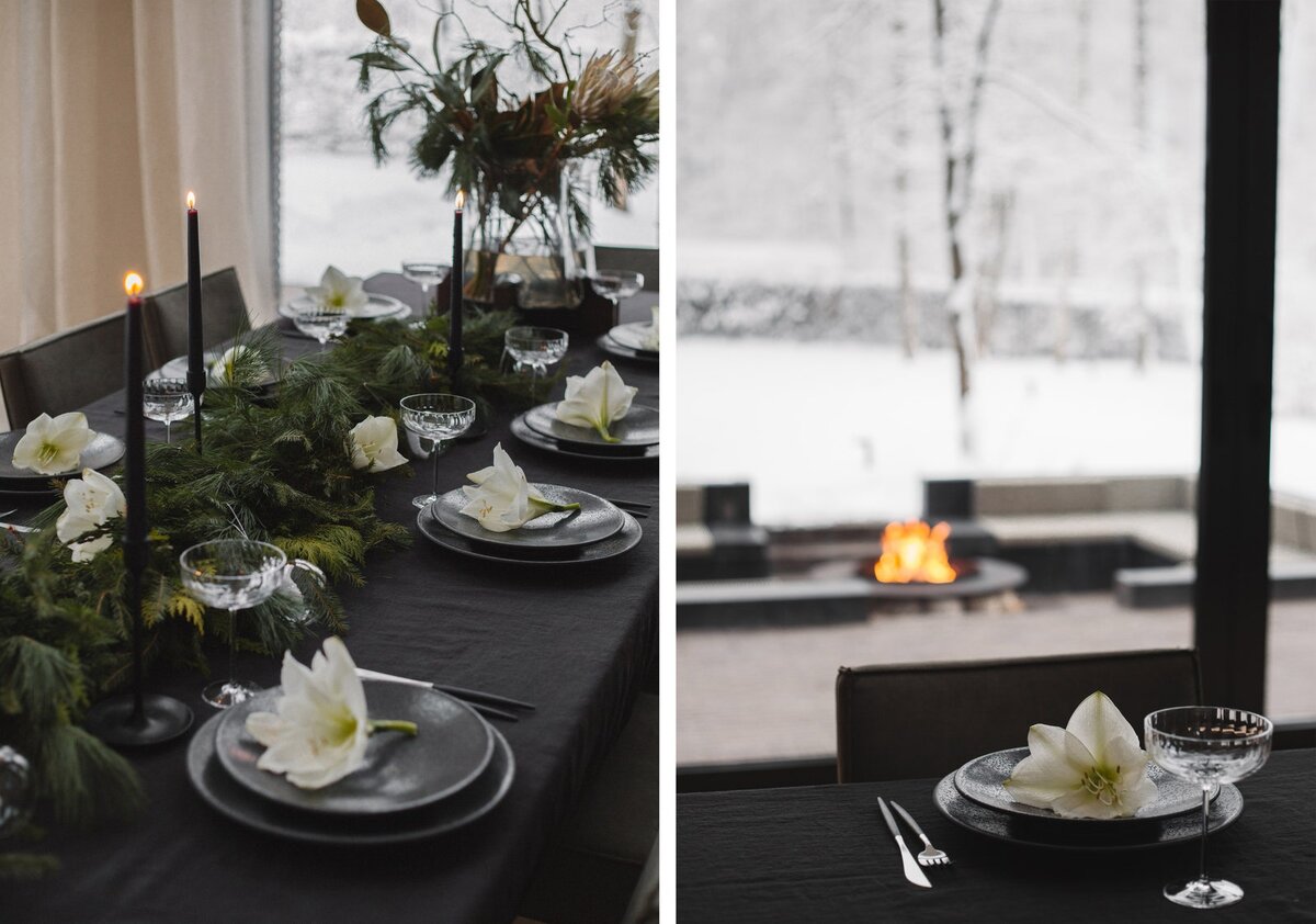 Не самый очевидный выбор для новогоднего убранства, но и оно может быть красивым и стильным, для тех кто любит лаконичность. Тем более, что черно-белая гамма - одна из самых актуальных, да и черный - цвет голых веток и белый - цвет снега традиционно считаются самыми зимними.
