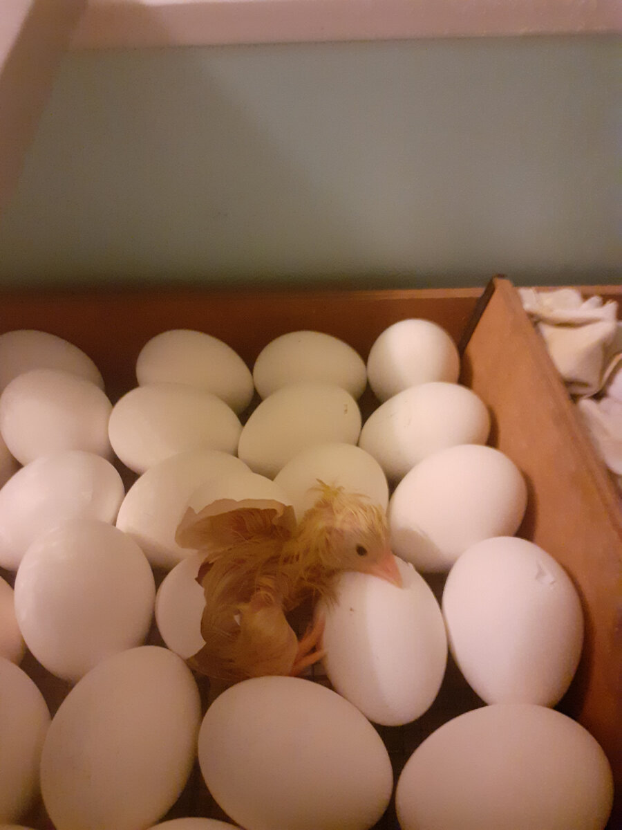 1 апреля заложила в инкубатор яички. Волнения-треволнения. Все мысли подчинены только инкубатору и что в нем происходит. А там зарождалась новая жизнь. И вот до вывода яичек остались сутки, а ситуация семейная сложилась так, что нам нужно было выехать в деревню. Что делать с инкубатором? Уложили его в машину, закутали всевозможными одеялами, пледами и поехали тихонечко, объезжая все ямки-выбоинки. Вместо 2 часов ехали почти 4. Приехали, сразу инкубатор в сеть и вдруг услышали писк. Яйца начали пищать и шевелиться. К вечеру дня приезда из яичек стали вылупляться цыплятки. Дети, муж и я собрались собрались у инкубатора и наблюдали. Очень интересный процесс!