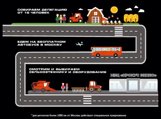 Собрав группу от 15 человек и отправив в дирекцию выставки заявку, делегация получит БЕСПЛАТНЫЙ автобус из региона до выставки и обратно и пригласительные билеты.