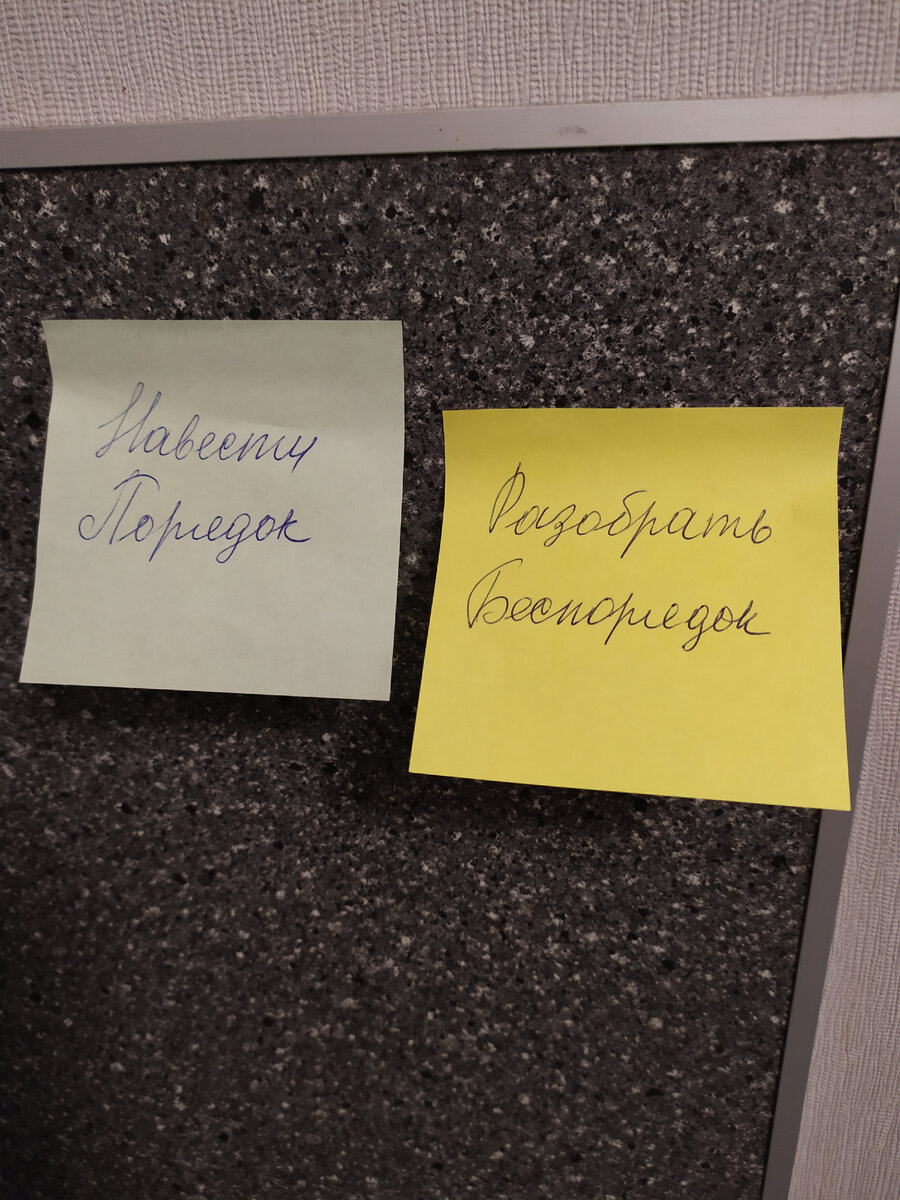 Предложение снять стикеры и больше не пользоваться ими вызвало в Ольге сопротивление. Однако, желание соблюсти Эстетику пространства пересилило шаблонное поведение, к которому она привыкла. Ольга призналась, что свою кошечку она и так никогда не забудет покормить, да и цветы исправно поливает. А стикеры просто "прижились" на боковой стенке холодильника очень давно. Одноразовые дела Ольга стала записывать в телефон, который напомнит время исполнения. Как вариант можно использовать ежедневник.