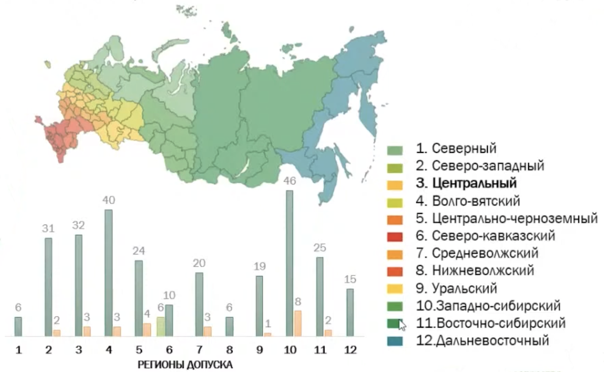 Больше всего образцов можно использовать в Западно-Сибирском регионе, но также и в Центральном, Волго-Вятском, Центрально-Черноземном регионе.
