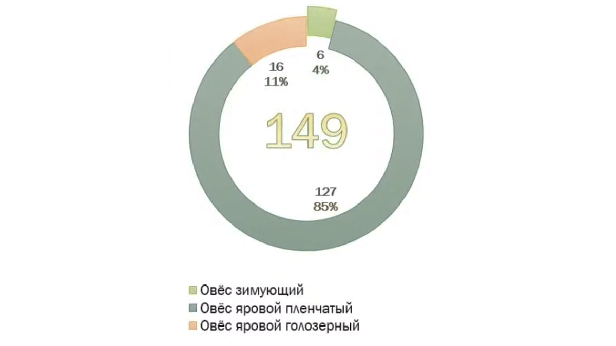 На сегодняшний день в государственном реестре селекционных достижений, допущенных к использованию, находится 149 сортов овса, из них 6 сортов относится к овсу зимующему. 127 сортов (85% от общего числа) приходится на овес пленчатый и 16 сортов — овес голозерный.