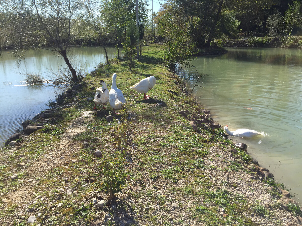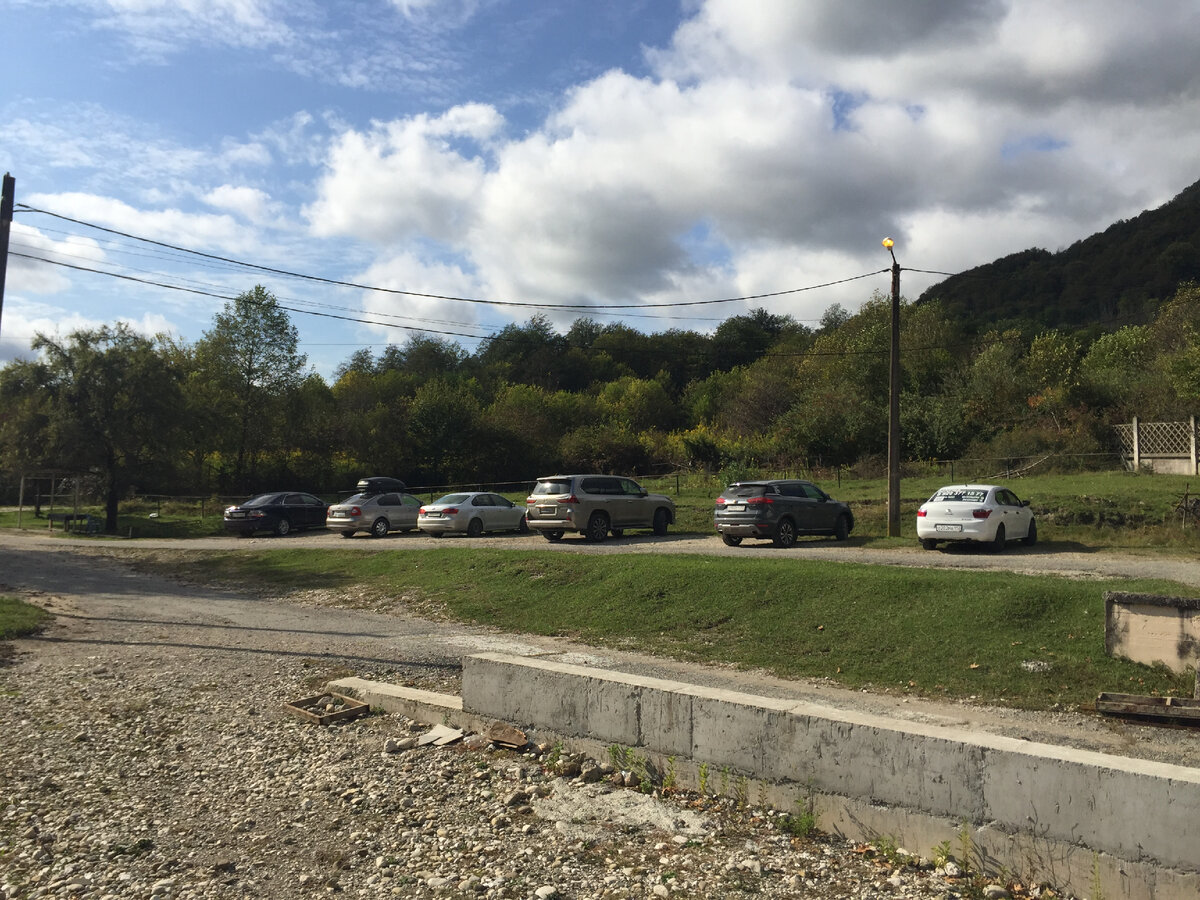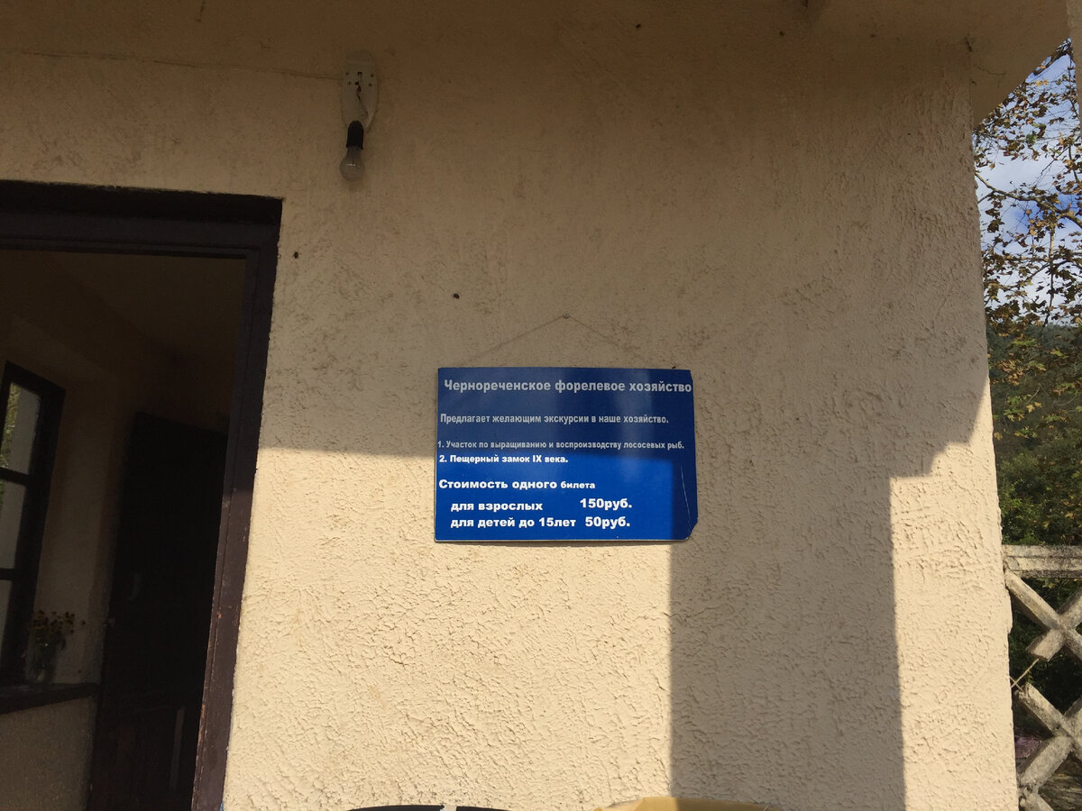 Уезжая с в сторону Пицунды, свернули по указателю направо. Чернореченское форелевое хозяйство. Гудаутский район, рядом с селом Отхара. Ради любопытства.