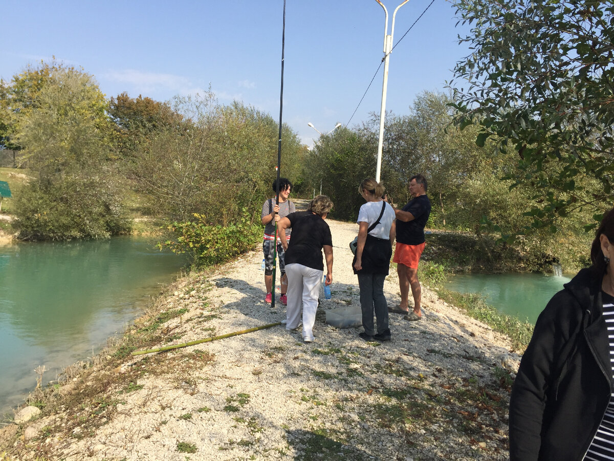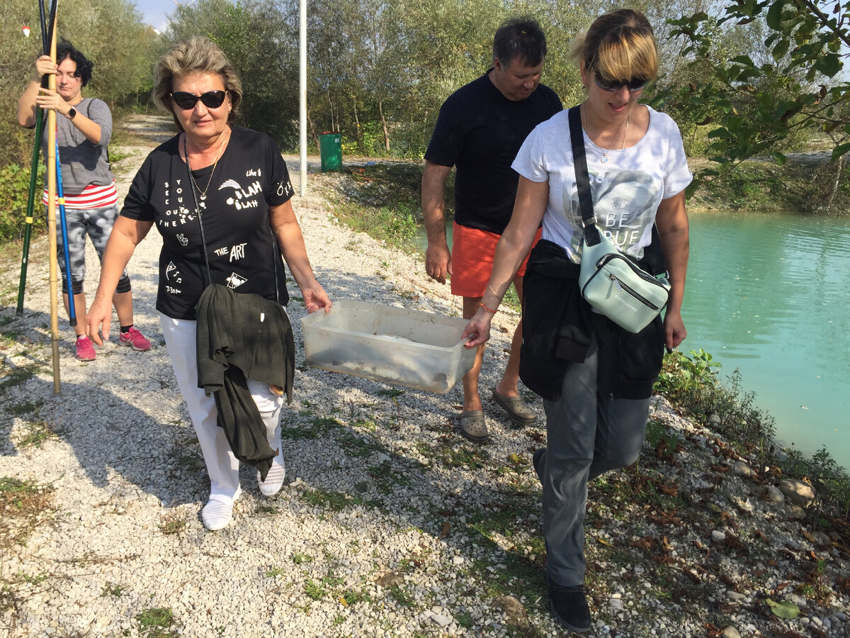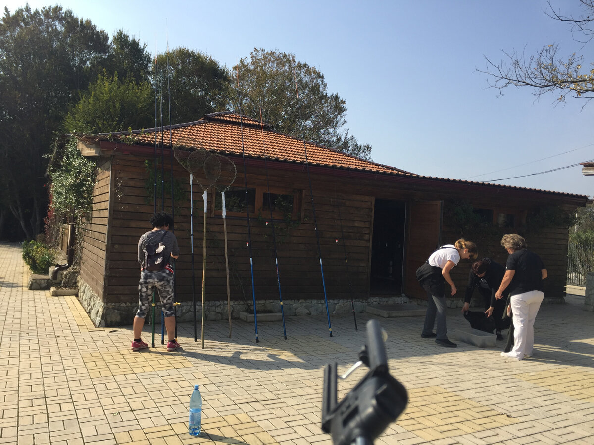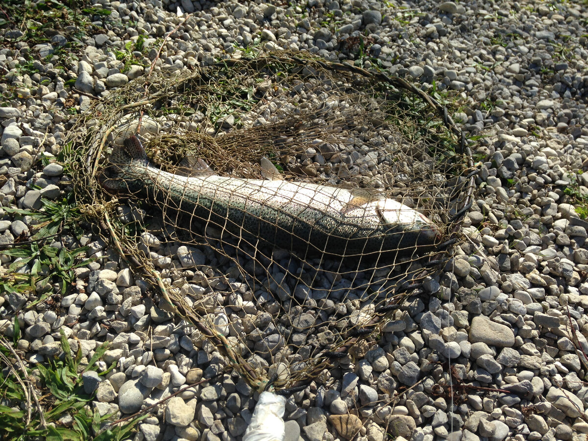 И через четыре дня мы опять на рыбалке. Но рыбалкой это можно назвать условно. Сачком с помощью той же Майи из бассейна выловили рыбку.