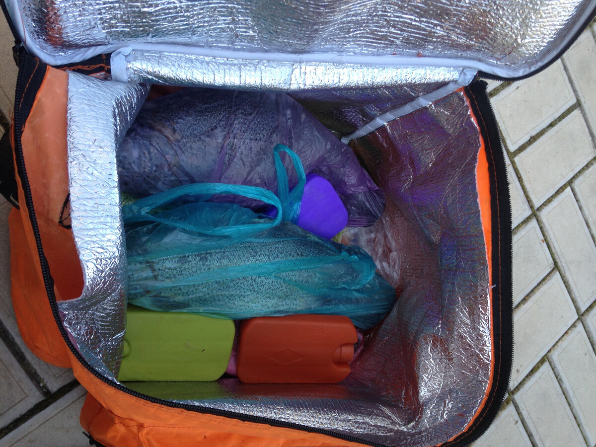 Так и вышло. Разместили нашу рыбу в двух морозильных камерах. Заморозили элементы, которые были и несколько маленьких бутылок с водой.