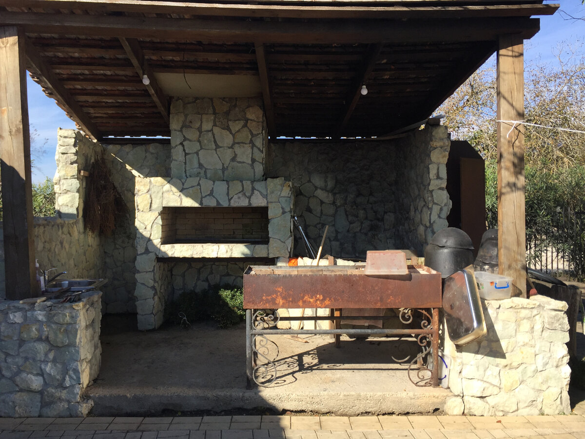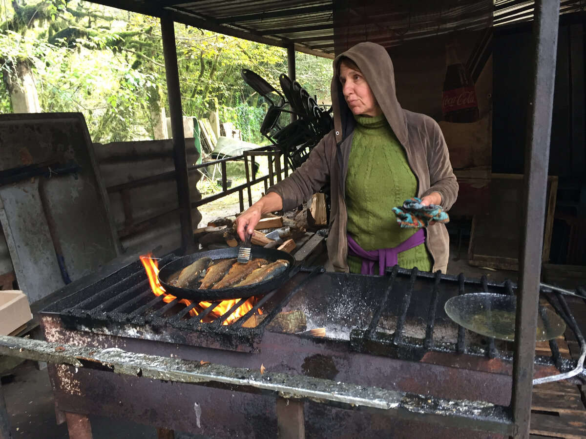 Готовить не стали. Решили забрать с собой. Нам помогли её потрошить, снабдив тазиком и ножом.