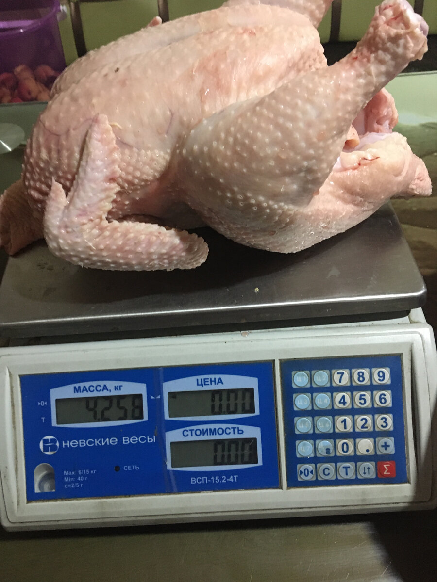 Мы не любим курятину в возрасте 1-1.5 мес, держим 3- 4 месяца. Поэтому тушки всегда крупные.