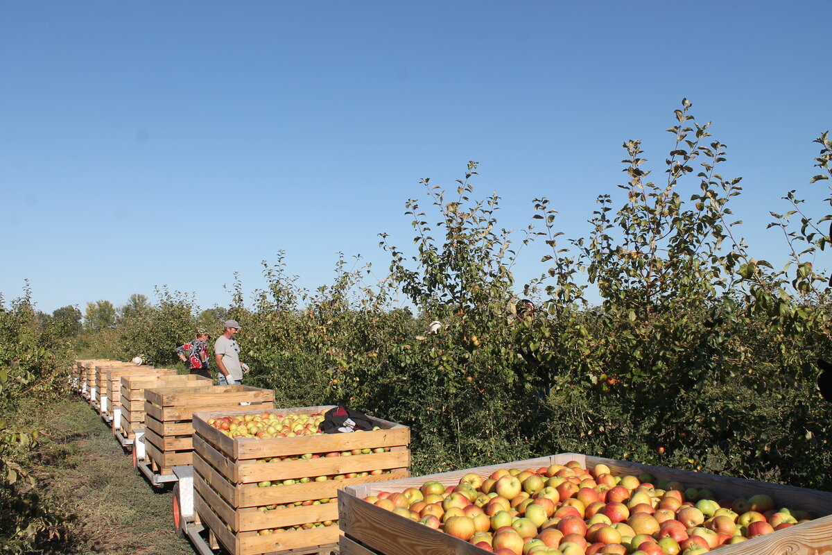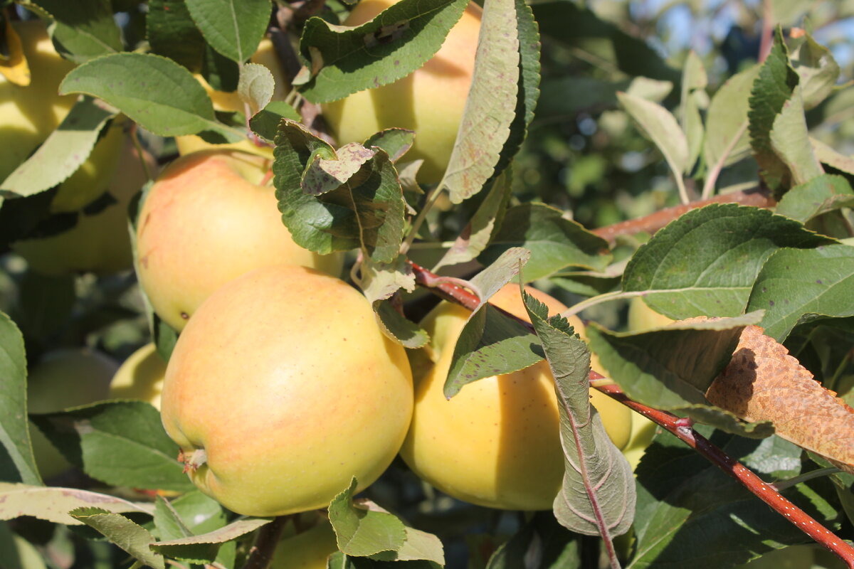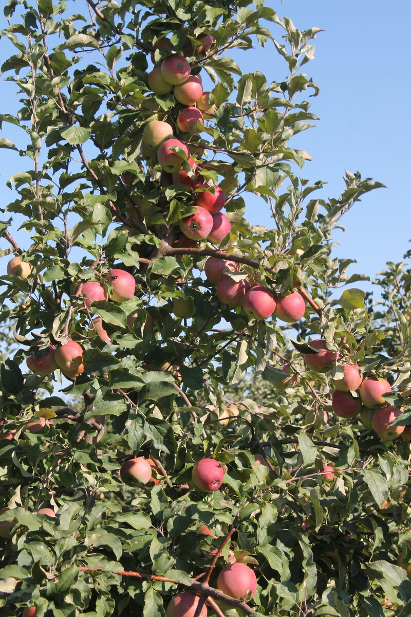 Первый участок сада был заложен на площади двадцать гектаров и уже дает урожай. Сегодня сад занимает восемьдесят гектаров. Основной объем – яблони сортов Лигол (Ligol) и Хани Крисп (HoneyCrisp – Медовый хруст). Есть несколько участков с другими сортами, высаженных «на пробу», вишня, слива и черешня. Все сорта яблок позднеосенние или зимние, для длительного хранения. Покупатель в магазине ориентируется на внешний вид яблока, и только дома пробует его на вкус. Даже если ваше яблоко сочное и вкусное, но на вид морщинистое и несвежее, у него нет шансов отправиться в корзинку покупателя.