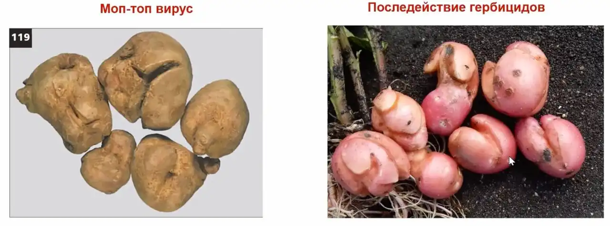 В данном случае только за счет молекулярной диагностики можно определить, имело ли место поражение вирусами либо к растрескиванию привели иные факторы. Соответственно, в первом случае правильное решение проблемы – это только смена семенного материала, во втором случае требуется оздоровление почвы, внесение органических удобрений, т.е. проведение мероприятий, направленных на снижение наличия гербицидов в почве.