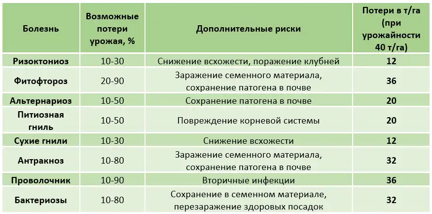 Это относится в основном к различным видам гнилей, т.е. тех болезней, которые способны перезаражать самостоятельно здоровые клубни. В первую очередь это фитофтороз и бактериальные гнили.