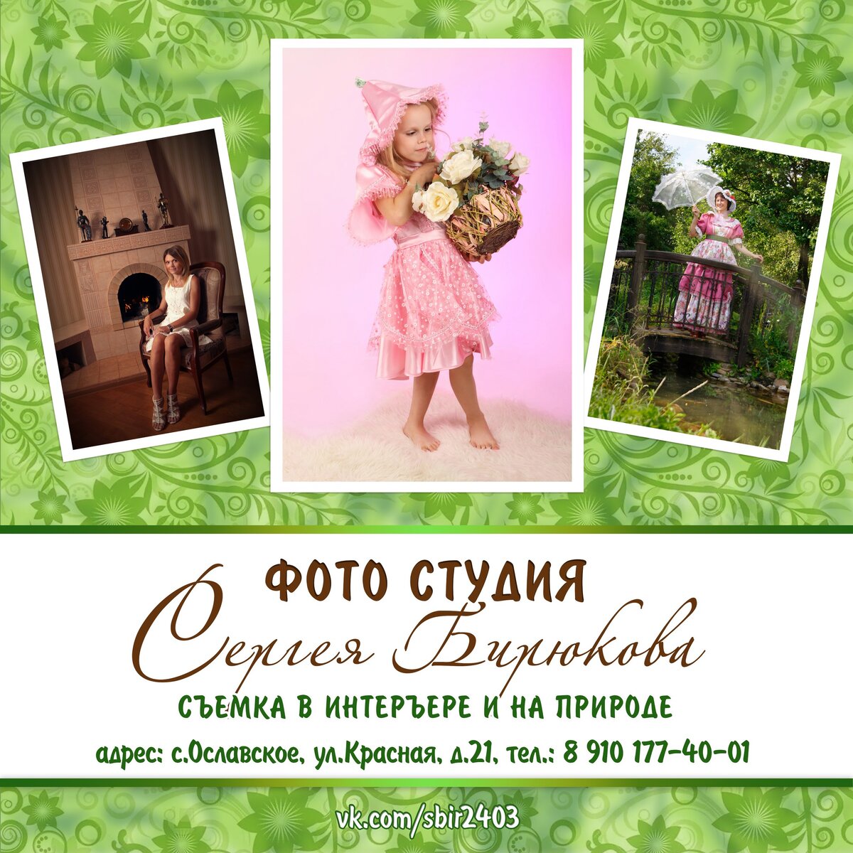 членом союза художников РФ С.В. Ермолиным и кинооператором, фотографом, художником В.И. Ишутиным. Владимир Иванович прививал владимирским фотографам умение работать со студийным светом так, чтобы исключить любую послесъёмочную обработку фотографий. И вот теперь их советы мне пригодились. Через месяц ко мне стали приезжать первые клиенты. Студия получилась уникальной: встроена в интерьер моего дома-усадьбы, и городские фотографы, фотографы из Москвы стали изредка брать студию в аренду под различные проекты. это тоже неплохая статья дохода!! Вы можете посмотреть мои работы на моей страничке ВКонтакте vk.com/oslavskoe21.