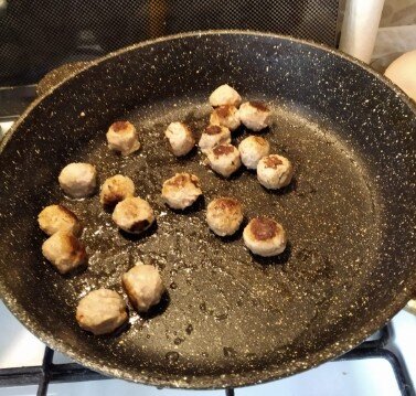 📌Быстро прижарила на сковороде фрикадельки, и как только вода закипела, убавила огонь и отправила их в кастрюлю.