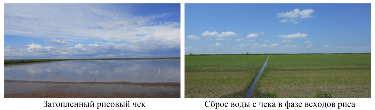 После появления всходов воду в чеке спускают на какое то время для проведения работ. В этот период проводят обработки средствами защиты растений, вносят минеральные удобрения (обычно карбамид).
