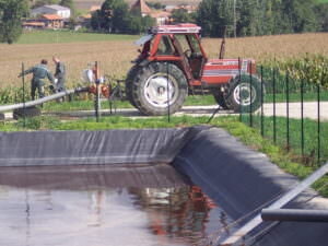 Жидкая часть вносится в поля весной до начала посевной или осенью после сбора урожая. Один конец шланга опускается в лагуну и с помощью специального насоса перекачивается к трактору, который "бежит" по полю и вносит удобрения. Шланговая система работает на 5-10 км от лагуны, а со специальной насосной станцией и до 20 км. Это очень удобно и быстро. Полностью контролируются все нормы внесения, геометрия участка, чтобы не было сливов в водные объекты и насыщается почвенный горизонт необходимыми питательными органическими веществами.