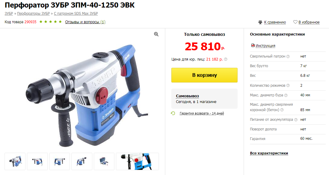 Аналогом стал перфоратор марки ЗУБР, стоимость которого весьма заметно отличается. Конечно, если вдаваться в подробности, то часть характеристик у этих позиций отличается. Но в целом, их можно назвать достаточно близкими аналогами друг друга.