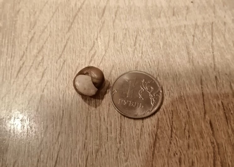 Думаю, ну точно умерла. Виноградные улитки способны выдерживать до -10, но на короткое время. А тут минимум 2 ночи да еще и другие деньки не из теплых. Конечно, улитка запечатала устье раковины белой слизью, которая позволяет сохранить тело и минимизирует потери во время спячки. Но сильно ли ей это помогло? На вид - как обычный камешек.